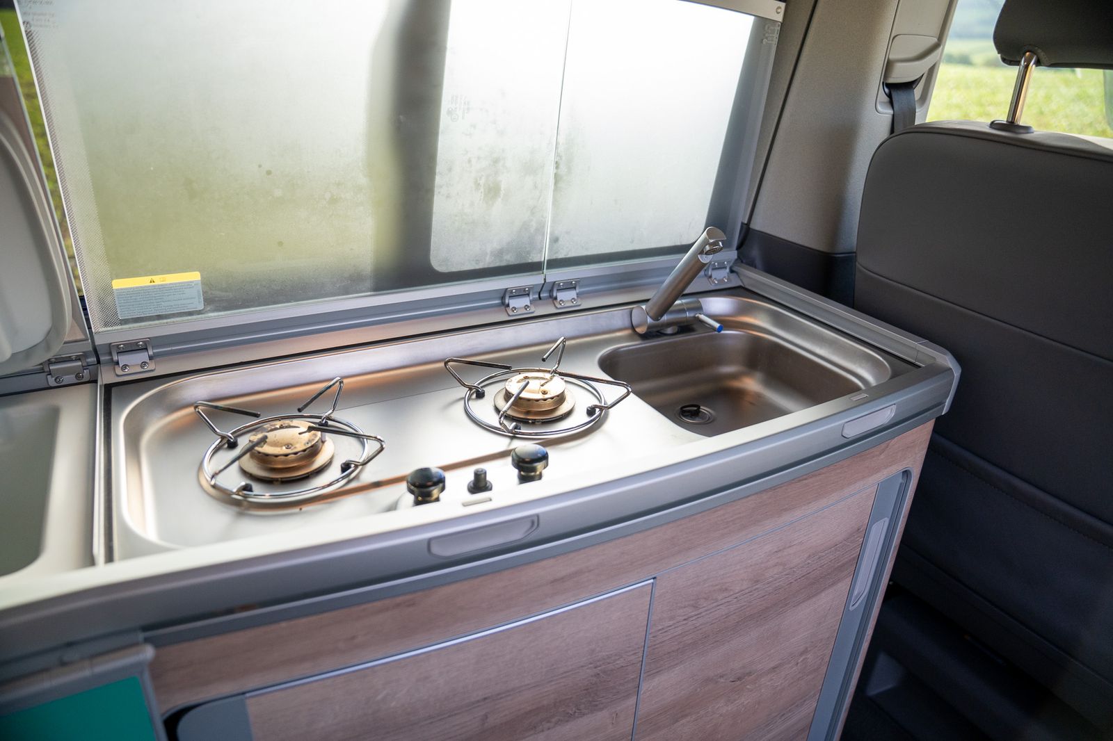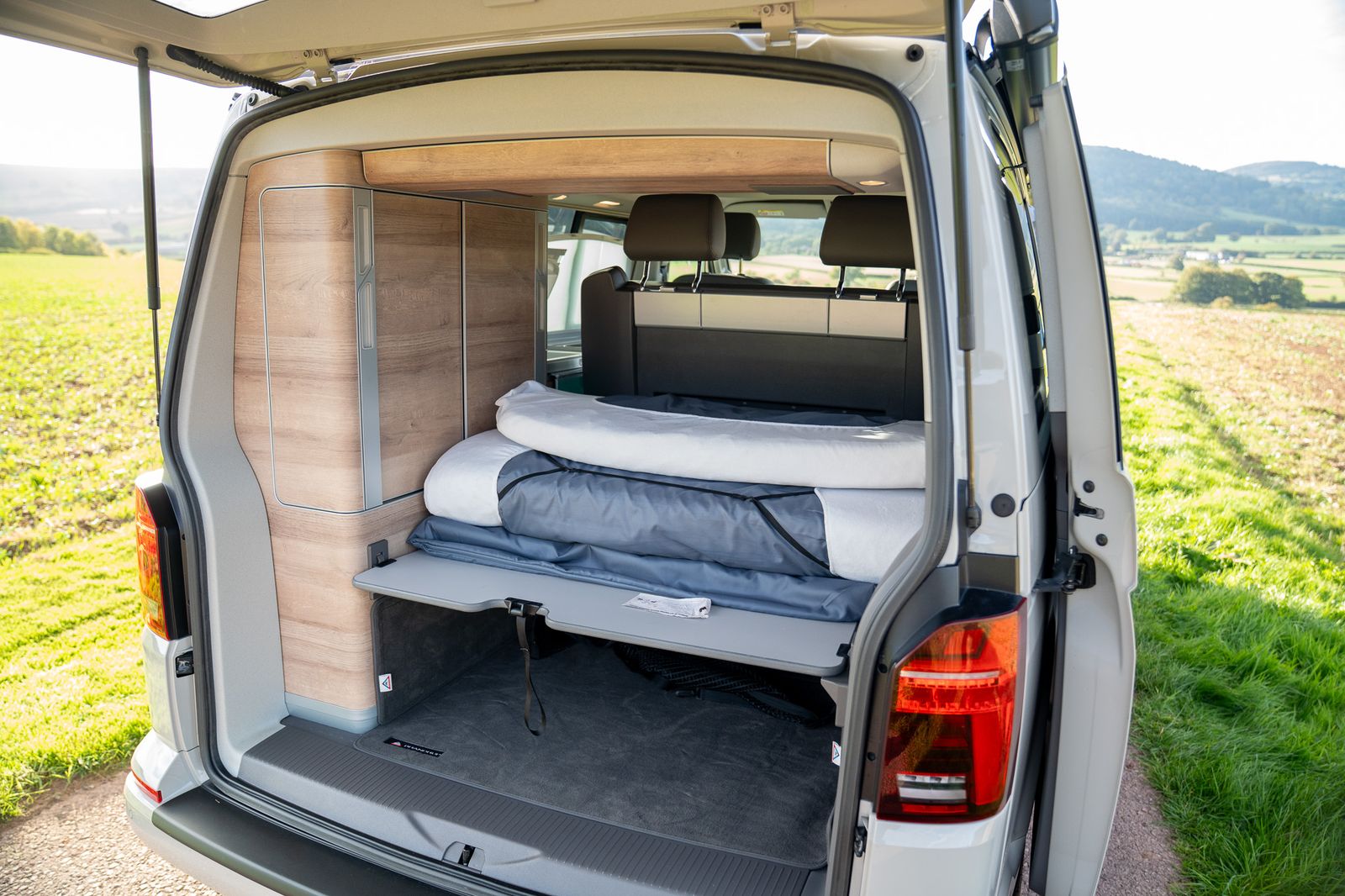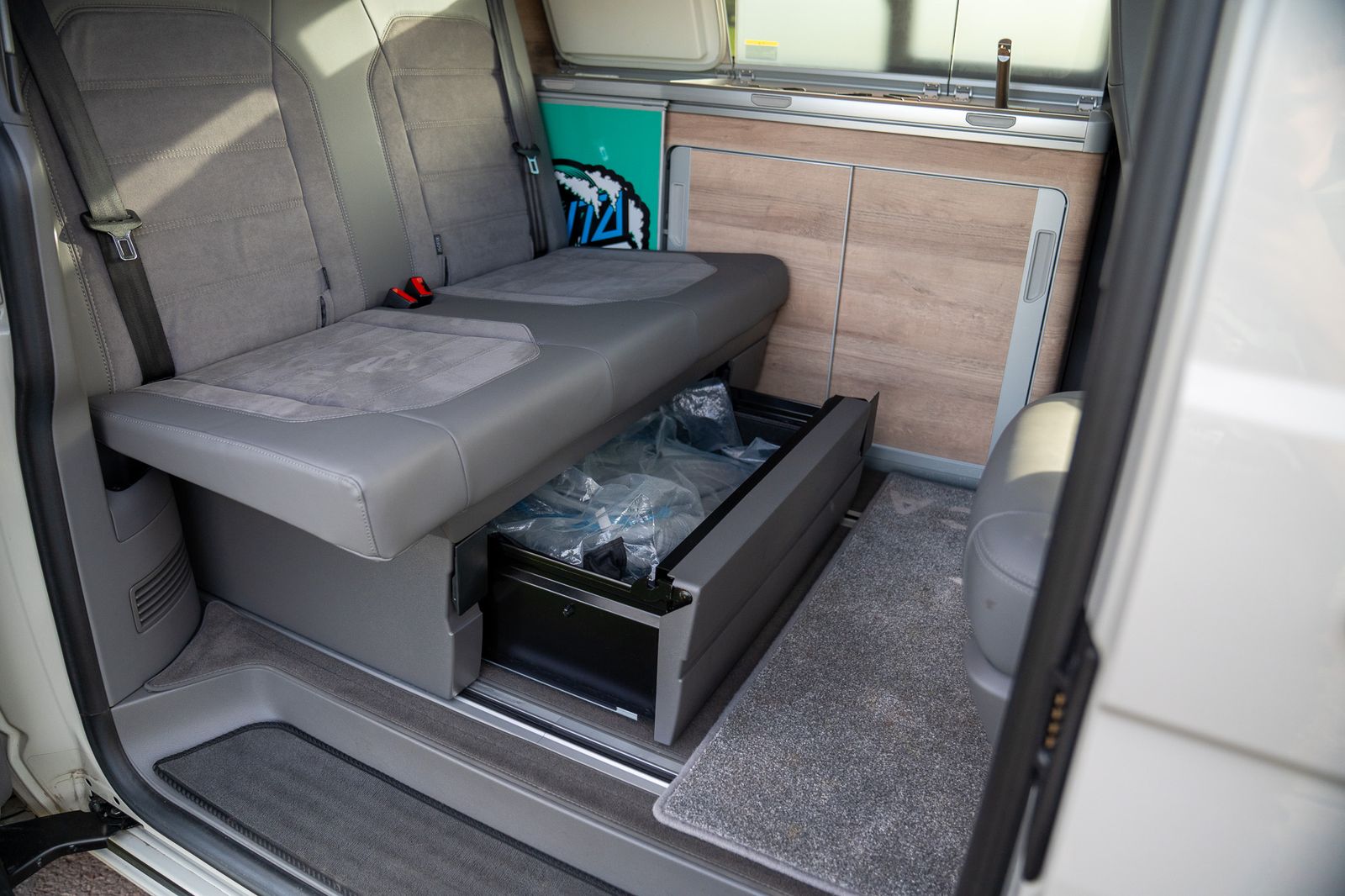 Equipped with modern conveniences, including a fully equipped kitchen, comfortable seating, and top-tier safety features, this VW camper elevates your adventures to a new level of luxury.
