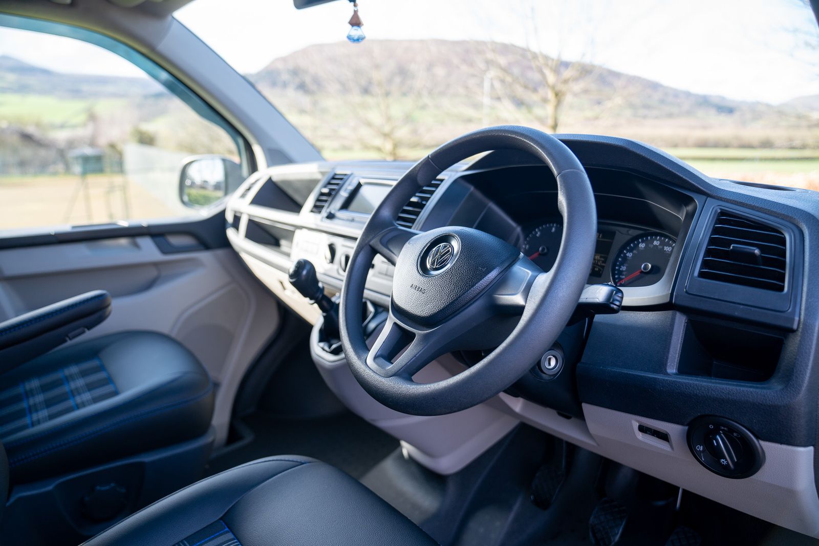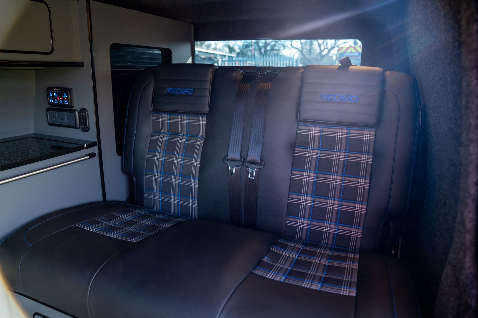 Inside, the van has a premium feel throughout. The rear is fitted with a RIB 3/4 bed complete with the Kiravans safety frame chassis brace, upholstered to perfectly match the front seats in genuine VW tartan. Up front, it has been converted to single seats with genuine armrests and lumbar support, with all seats professionally re-upholstered using genuine VW tartan. The front seats have also benefitted from reshaped foams and headrests, giving the cabin a smart and cohesive finish.
